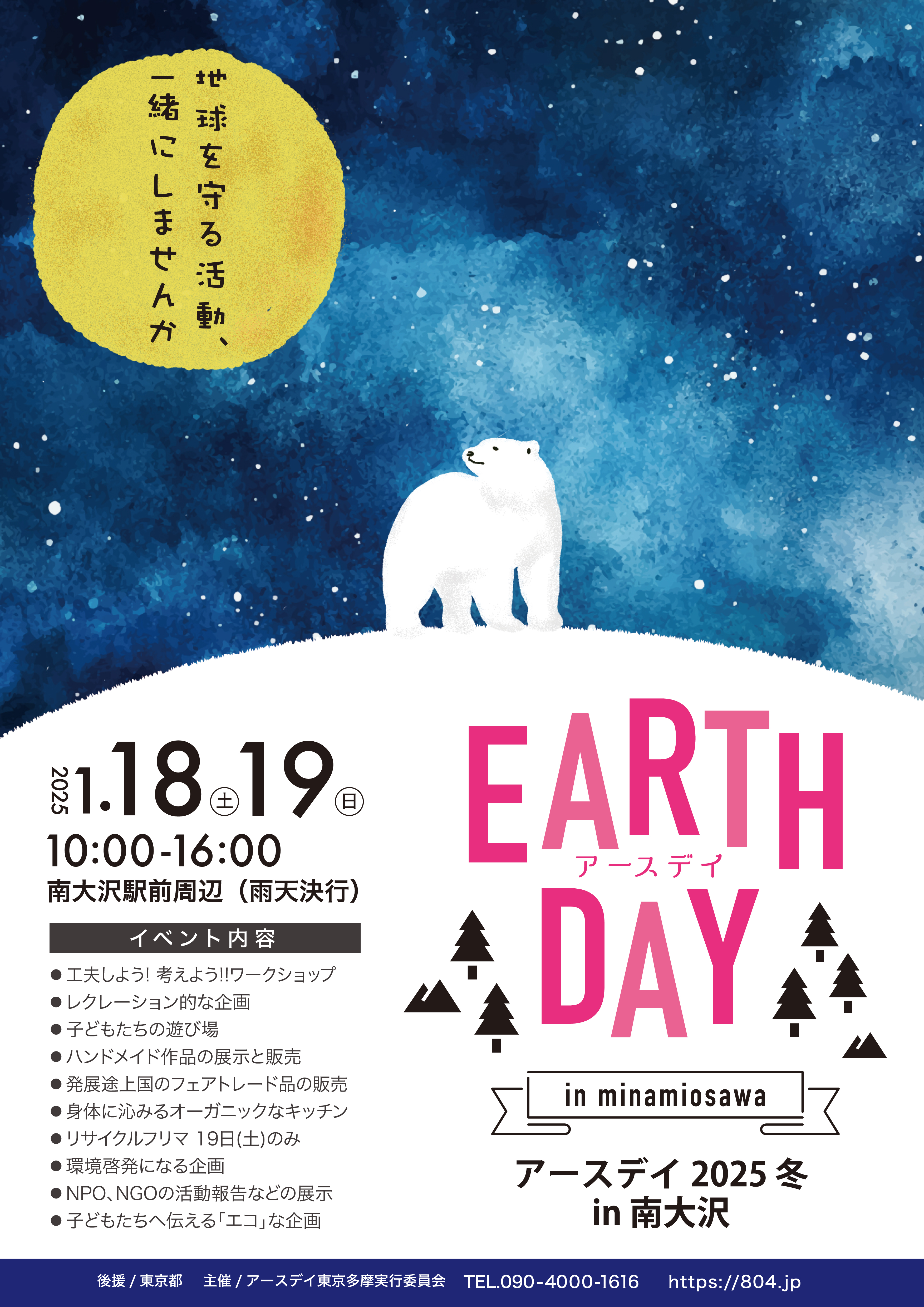 - ~南大沢~アースデイ2023~冬~ in 南大沢 2023年01月14日・15日、南大沢駅前歩道及び南大沢中郷公園にてにて「アースデイ2023~冬~ in 南大沢」開催。・・・出店のご予約・ご相談受付中!! フライヤーはよりダウンロードしてご使用ください。